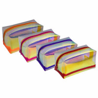 Detalhes: Material holográfico e translúcido. Com zíper colorido.